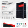 Tấm pin năng lượng mặt trời AE Solar AE700TME-132BDS công suất 700W, ứng dụng công nghệ Heterojunction half-cut cell và thiết kế kính đôi hai mặt (bifacial double-glass) giúp tăng hiệu suất thu năng lượng. Hiệu suất module đạt tới 22,56%, độ bền cao với khung nhôm hợp kim và kính cường lực, chịu tải gió 2400Pa và tuyết 5400Pa. Bảo hành sản phẩm 15 năm, hiệu suất tuyến tính 30 năm, phù hợp cho các dự án điện mặt trời quy mô lớn, thương mại và công nghiệp.